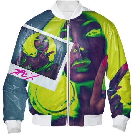 Light weight bombr jacket with your choice of white or black ribbing slight padding zip up front and side pockets. The inside is adorned with PAOM straps for swinging over your shoulders so you dont have to hold it.