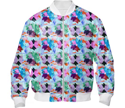 Light weight bombr jacket with your choice of white or black ribbing slight padding zip up front and side pockets. The inside is adorned with PAOM straps for swinging over your shoulders so you dont have to hold it.