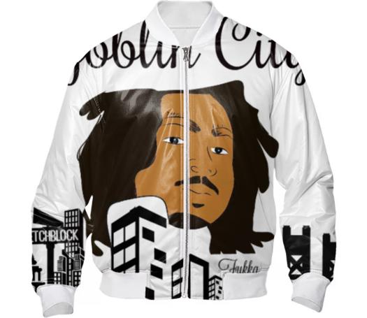 Light weight bombr jacket with your choice of white or black ribbing slight padding zip up front and side pockets. The inside is adorned with PAOM straps for swinging over your shoulders so you dont have to hold it.