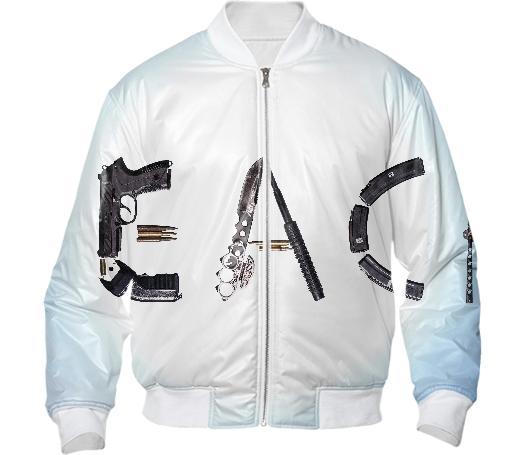 Light weight bombr jacket with your choice of white or black ribbing slight padding zip up front and side pockets. The inside is adorned with PAOM straps for swinging over your shoulders so you dont have to hold it.