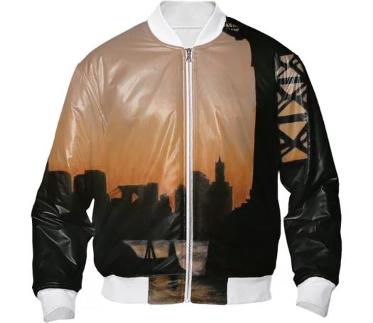 Light weight bombr jacket with your choice of white or black ribbing slight padding zip up front and side pockets. The inside is adorned with PAOM straps for swinging over your shoulders so you dont have to hold it.