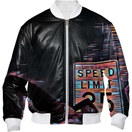 Light weight bombr jacket with your choice of white or black ribbing slight padding zip up front and side pockets. The inside is adorned with PAOM straps for swinging over your shoulders so you dont have to hold it.