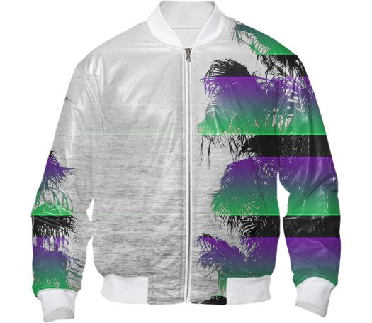 Light weight bombr jacket with your choice of white or black ribbing slight padding zip up front and side pockets. The inside is adorned with PAOM straps for swinging over your shoulders so you dont have to hold it.