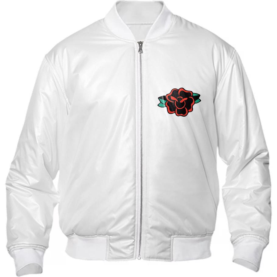 Light weight bombr jacket with your choice of white or black ribbing slight padding zip up front and side pockets. The inside is adorned with PAOM straps for swinging over your shoulders so you dont have to hold it.
