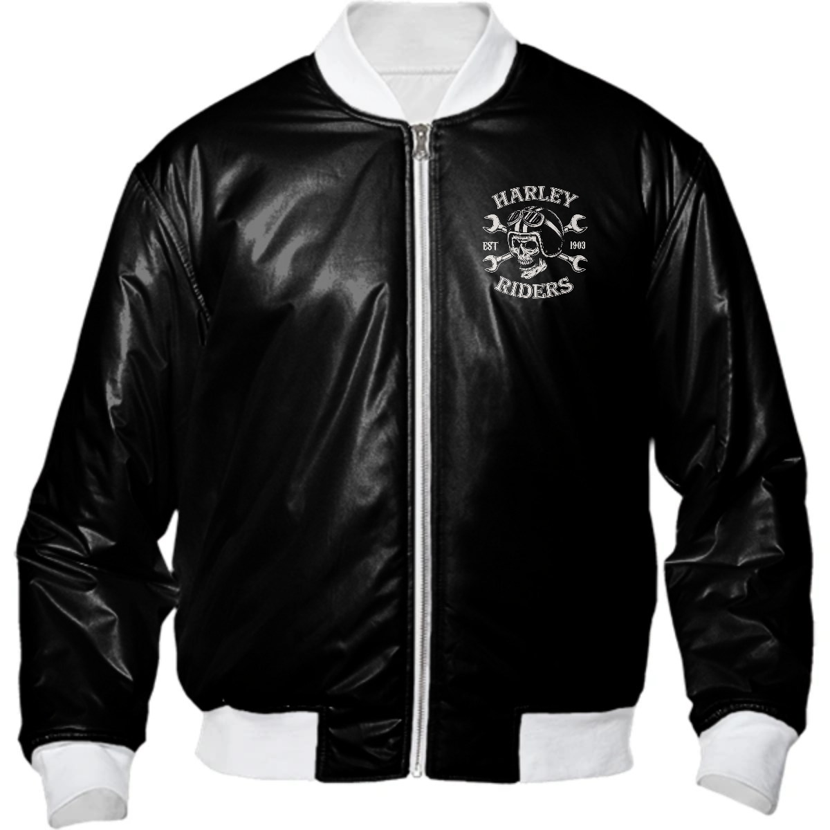Light weight bombr jacket with your choice of white or black ribbing slight padding zip up front and side pockets. The inside is adorned with PAOM straps for swinging over your shoulders so you dont have to hold it.