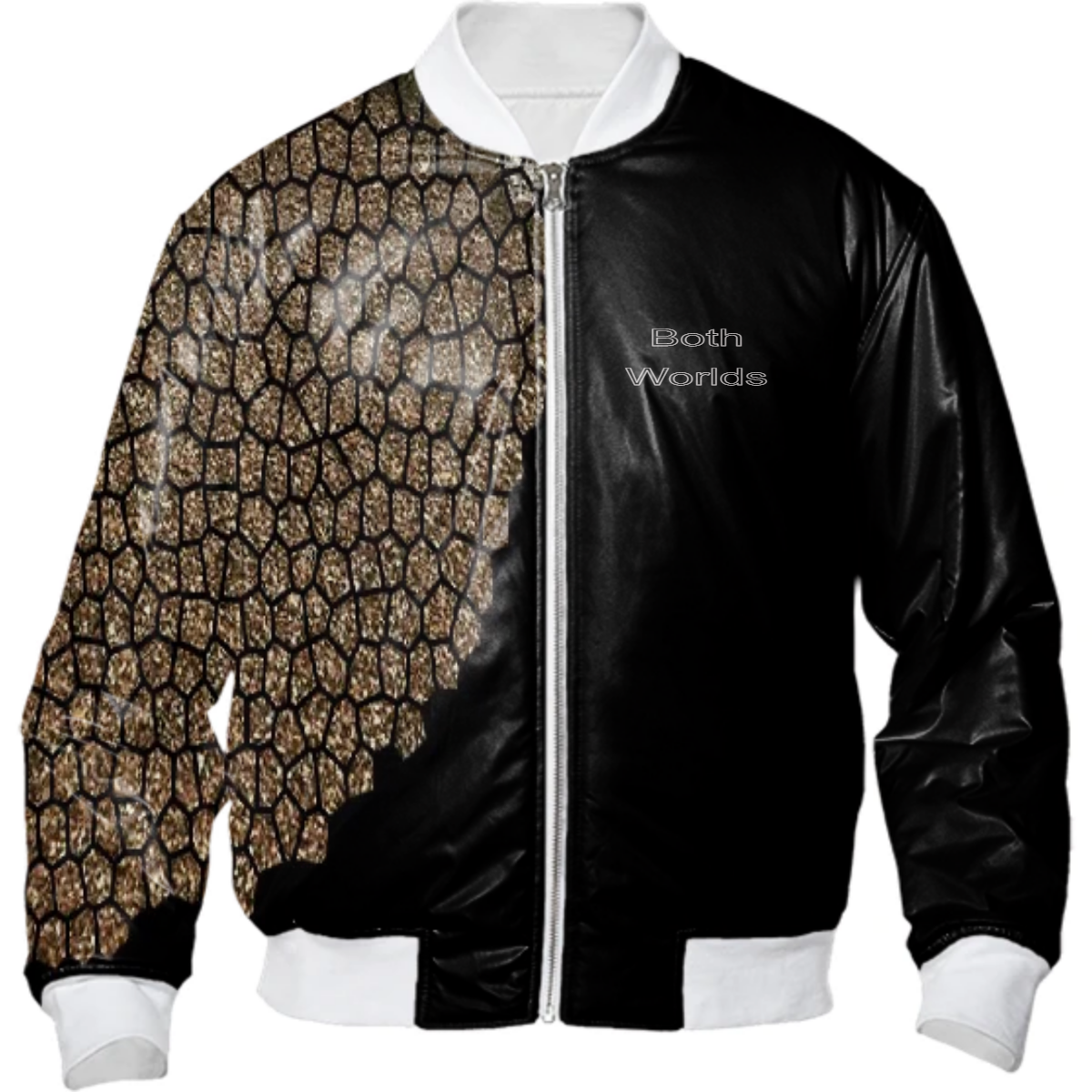 Light weight bombr jacket with your choice of white or black ribbing slight padding zip up front and side pockets. The inside is adorned with PAOM straps for swinging over your shoulders so you dont have to hold it.