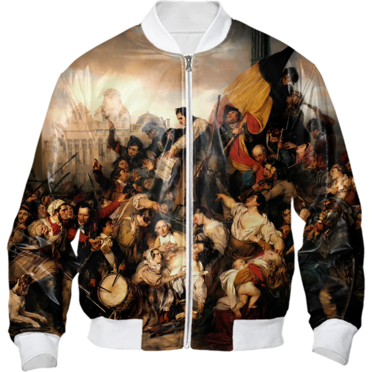 Light weight bombr jacket with your choice of white or black ribbing slight padding zip up front and side pockets. The inside is adorned with PAOM straps for swinging over your shoulders so you dont have to hold it.