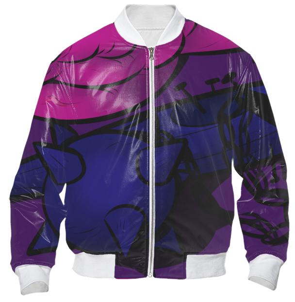Light weight bombr jacket with your choice of white or black ribbing slight padding zip up front and side pockets. The inside is adorned with PAOM straps for swinging over your shoulders so you dont have to hold it.