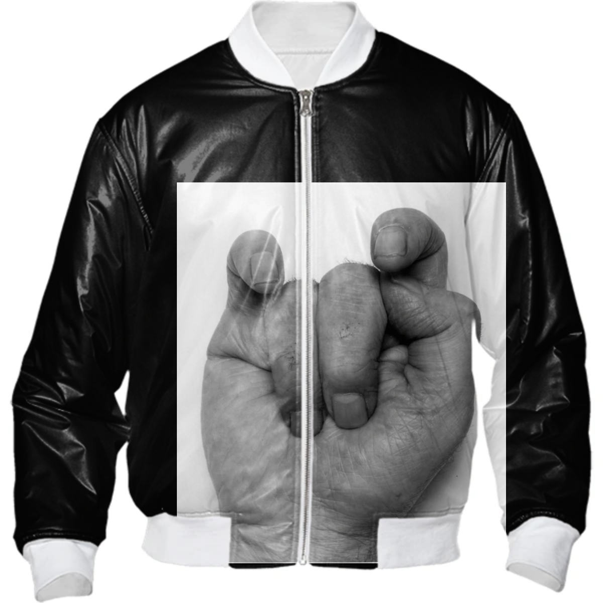 Light weight bombr jacket with your choice of white or black ribbing slight padding zip up front and side pockets. The inside is adorned with PAOM straps for swinging over your shoulders so you dont have to hold it.