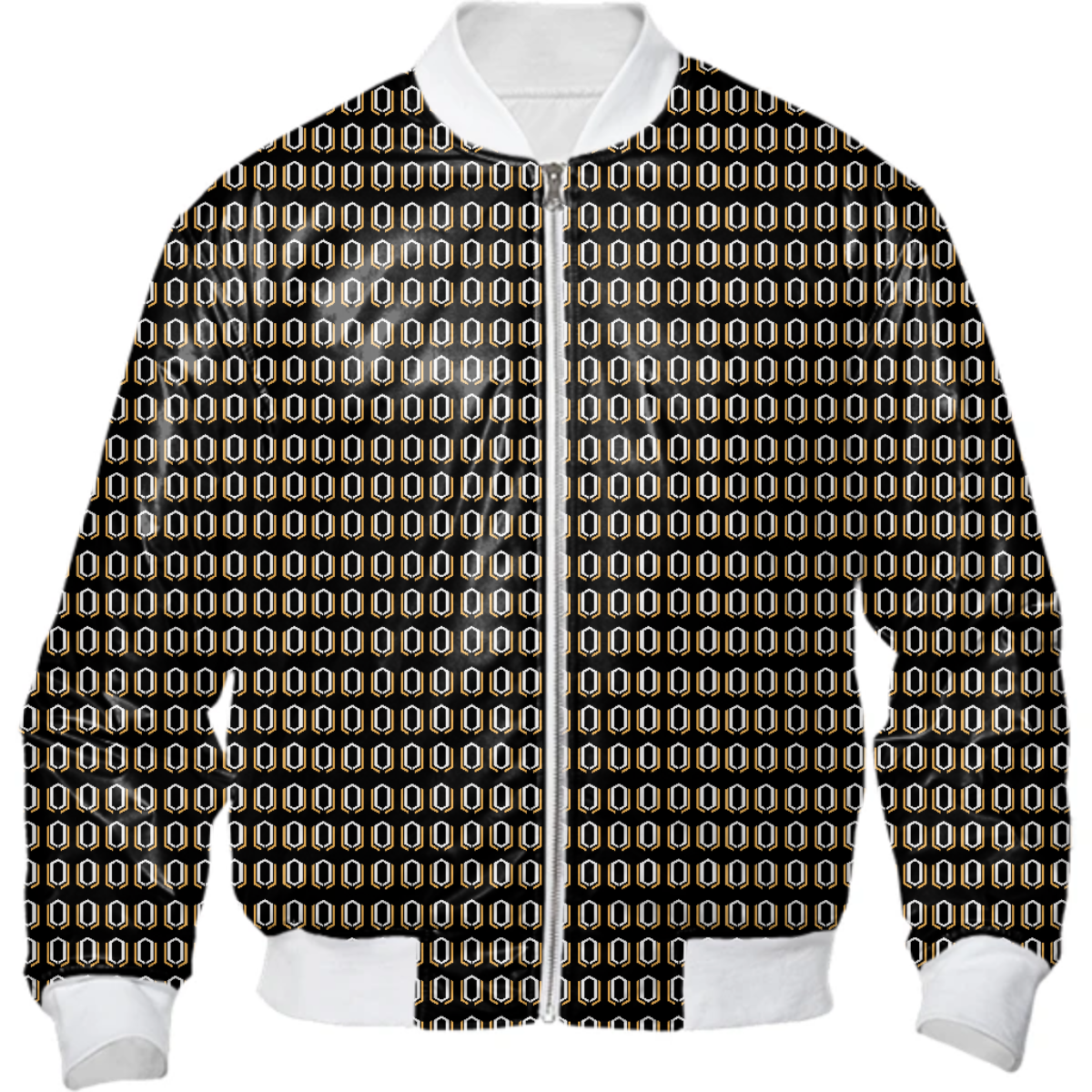 Light weight bombr jacket with your choice of white or black ribbing slight padding zip up front and side pockets. The inside is adorned with PAOM straps for swinging over your shoulders so you dont have to hold it.