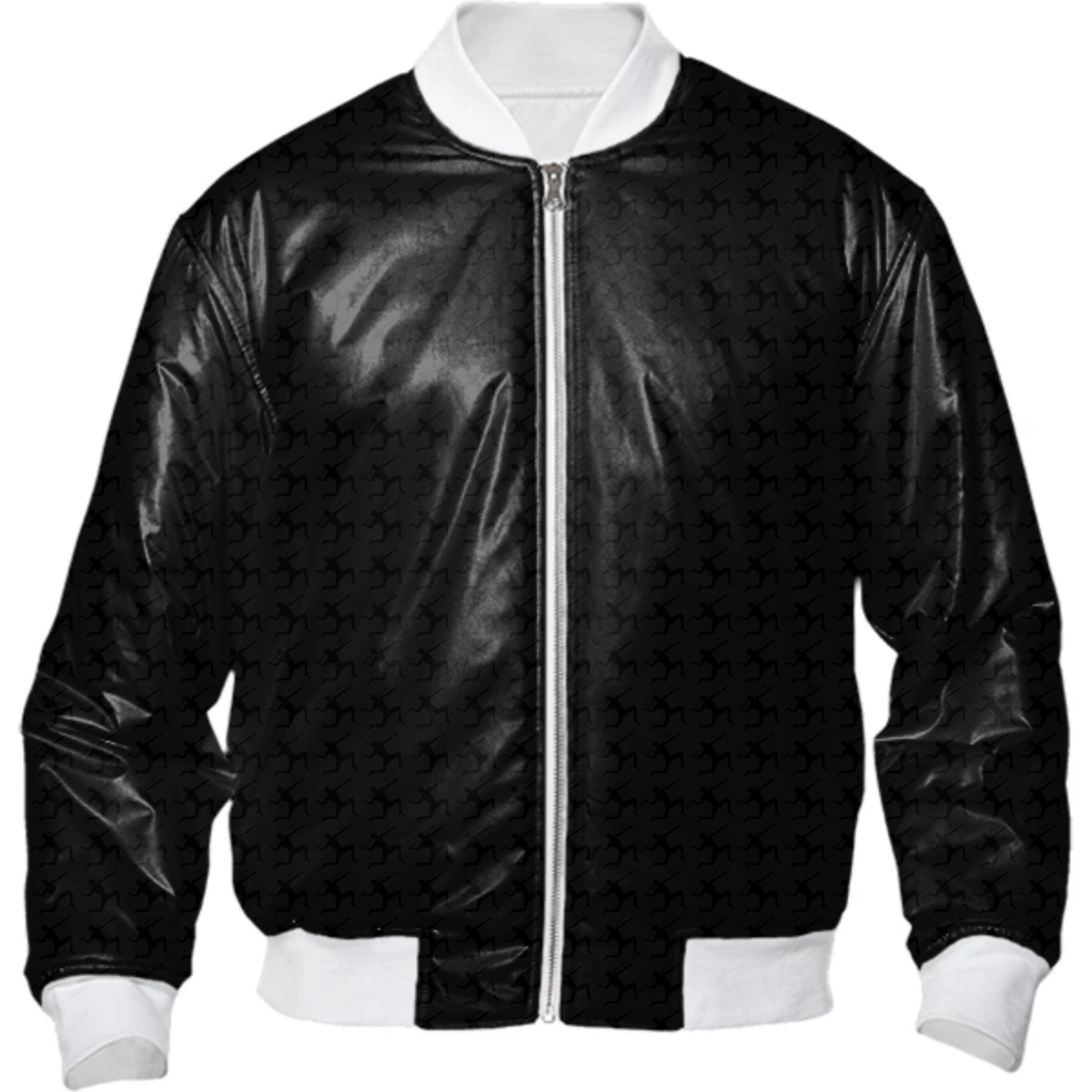 Light weight bombr jacket with your choice of white or black ribbing slight padding zip up front and side pockets. The inside is adorned with PAOM straps for swinging over your shoulders so you dont have to hold it.