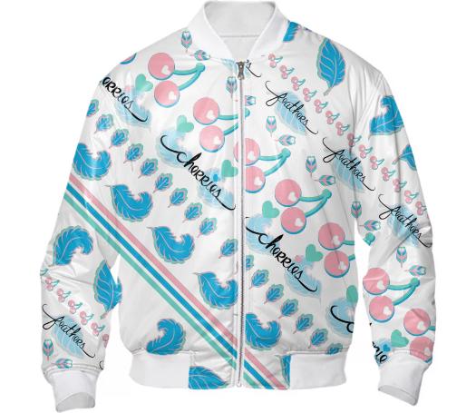 Light weight bombr jacket with your choice of white or black ribbing slight padding zip up front and side pockets. The inside is adorned with PAOM straps for swinging over your shoulders so you dont have to hold it.