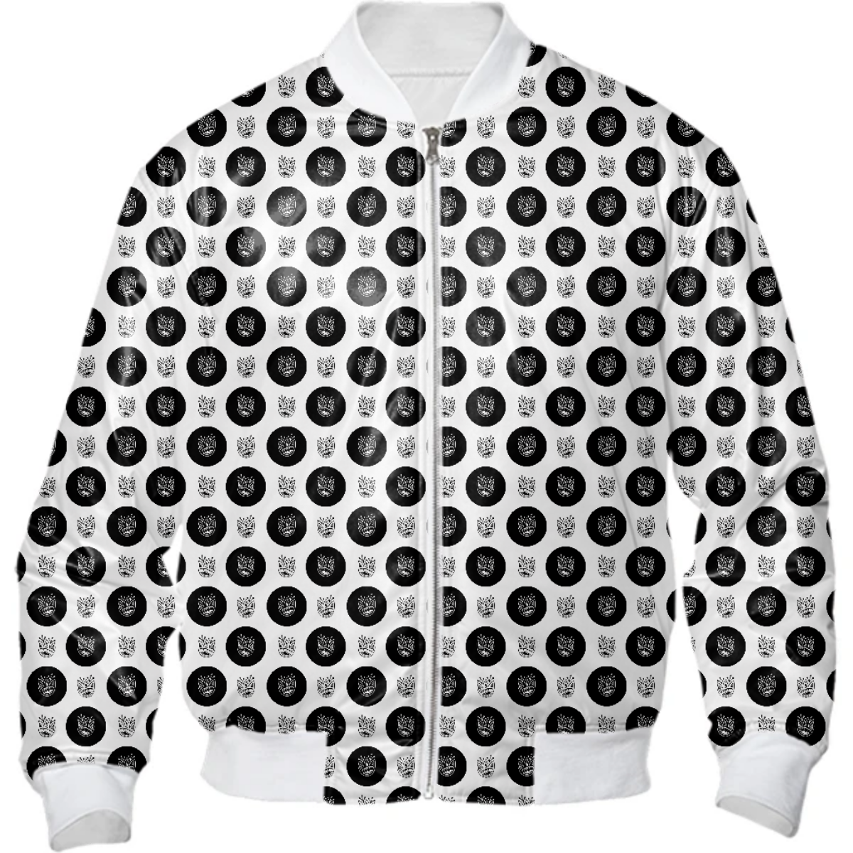 Light weight bombr jacket with your choice of white or black ribbing slight padding zip up front and side pockets. The inside is adorned with PAOM straps for swinging over your shoulders so you dont have to hold it.