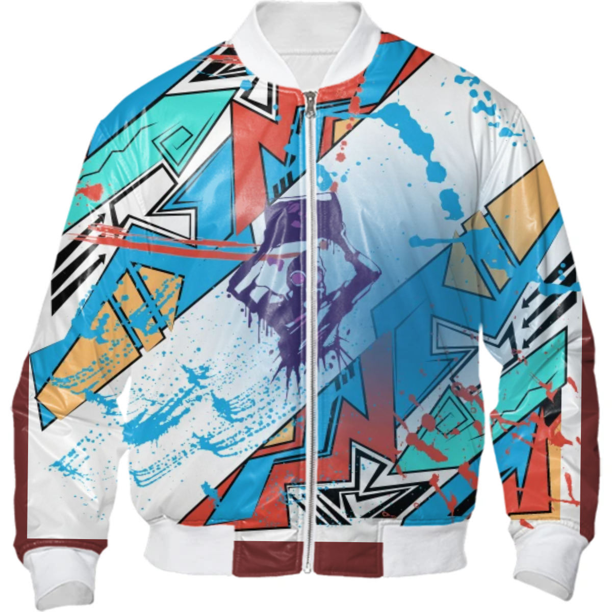 Light weight bombr jacket with your choice of white or black ribbing slight padding zip up front and side pockets. The inside is adorned with PAOM straps for swinging over your shoulders so you dont have to hold it.