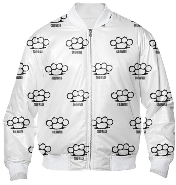 Light weight bombr jacket with your choice of white or black ribbing slight padding zip up front and side pockets. The inside is adorned with PAOM straps for swinging over your shoulders so you dont have to hold it.