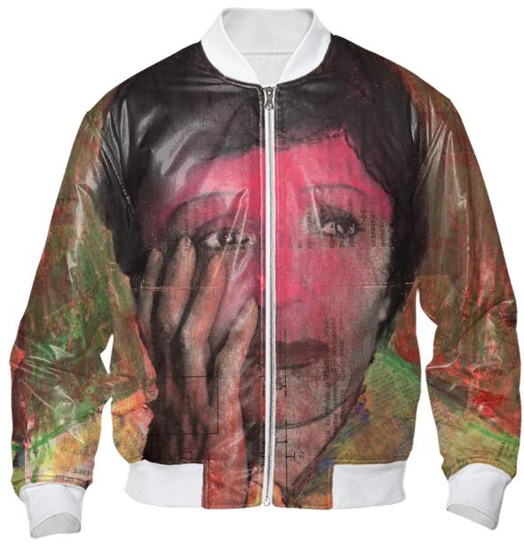 Light weight bombr jacket with your choice of white or black ribbing slight padding zip up front and side pockets. The inside is adorned with PAOM straps for swinging over your shoulders so you dont have to hold it.
