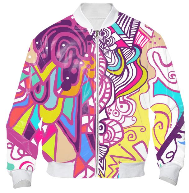 Light weight bombr jacket with your choice of white or black ribbing slight padding zip up front and side pockets. The inside is adorned with PAOM straps for swinging over your shoulders so you dont have to hold it.