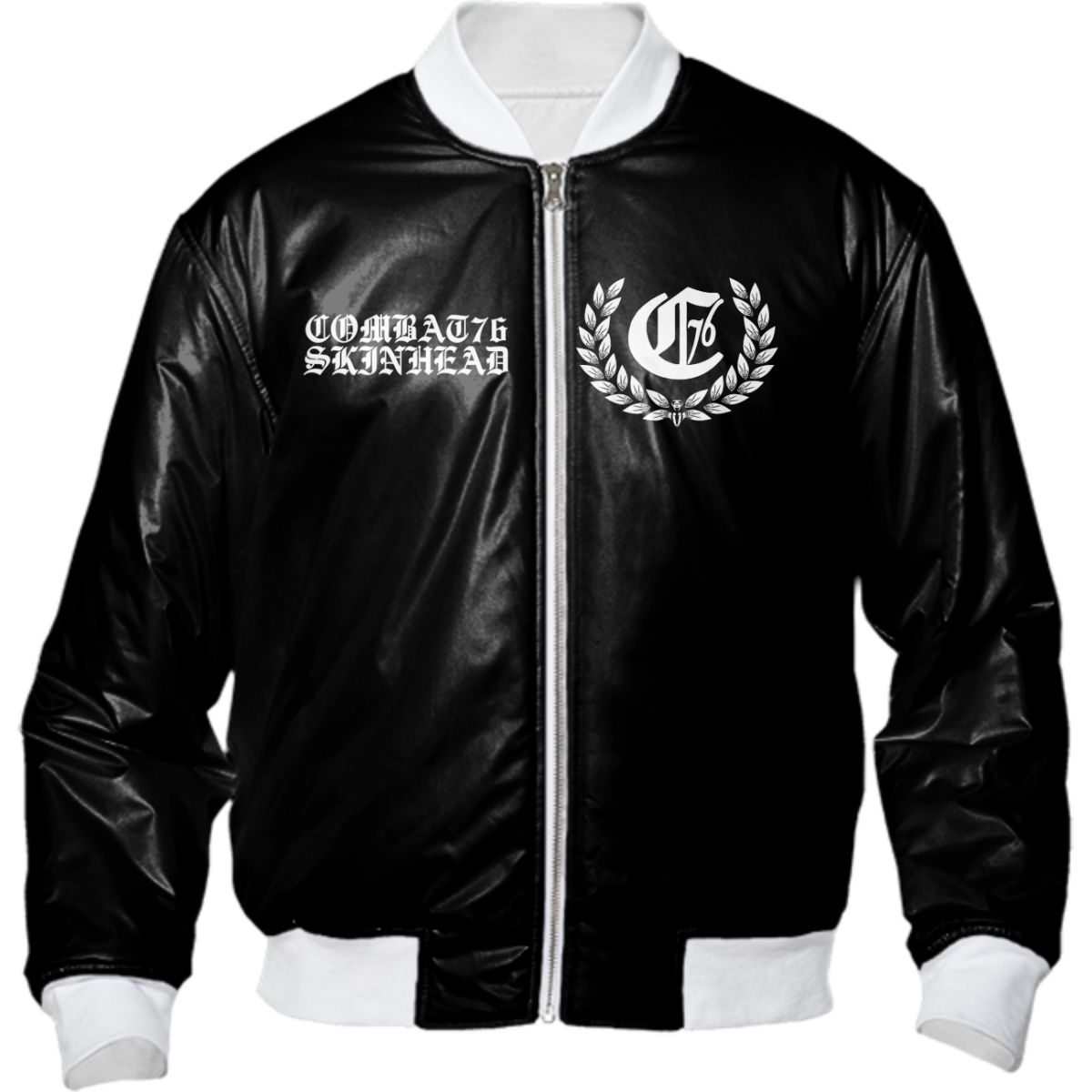 Light weight bombr jacket with your choice of white or black ribbing slight padding zip up front and side pockets. The inside is adorned with PAOM straps for swinging over your shoulders so you dont have to hold it.