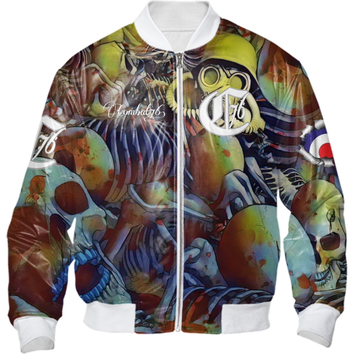 Light weight bombr jacket with your choice of white or black ribbing slight padding zip up front and side pockets. The inside is adorned with PAOM straps for swinging over your shoulders so you dont have to hold it.