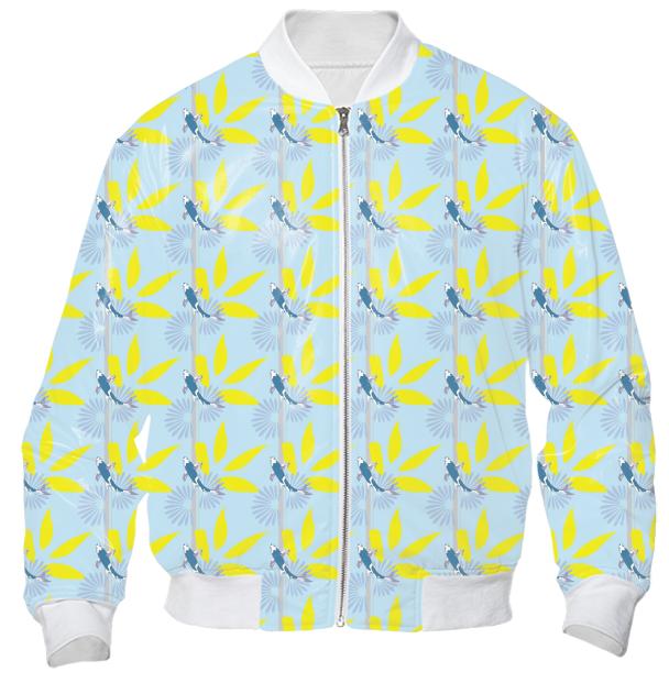 Light weight bombr jacket with your choice of white or black ribbing slight padding zip up front and side pockets. The inside is adorned with PAOM straps for swinging over your shoulders so you dont have to hold it.
