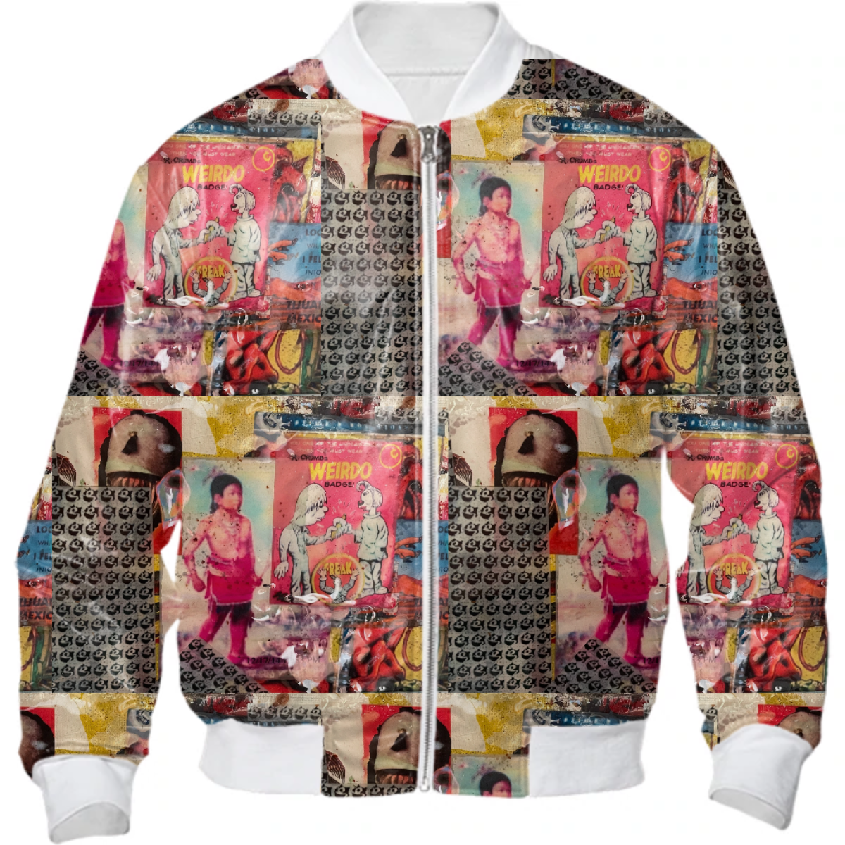 Light weight bombr jacket with your choice of white or black ribbing slight padding zip up front and side pockets. The inside is adorned with PAOM straps for swinging over your shoulders so you dont have to hold it.