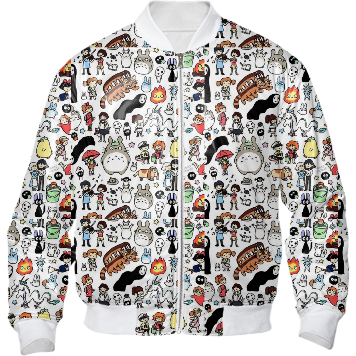 Light weight bombr jacket with your choice of white or black ribbing slight padding zip up front and side pockets. The inside is adorned with PAOM straps for swinging over your shoulders so you dont have to hold it.