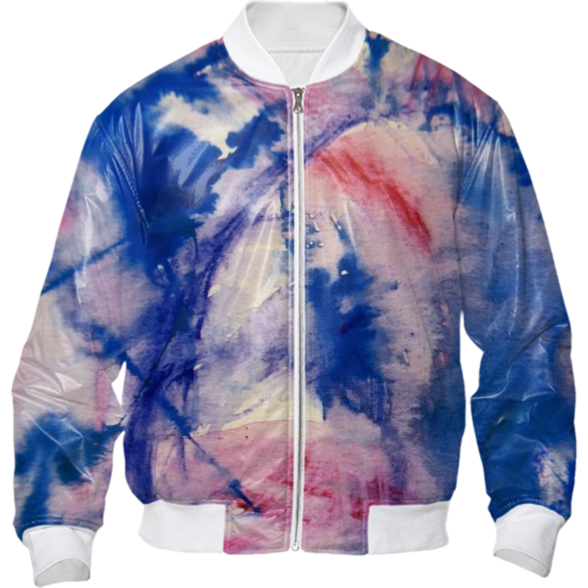Light weight bombr jacket with your choice of white or black ribbing slight padding zip up front and side pockets. The inside is adorned with PAOM straps for swinging over your shoulders so you dont have to hold it.