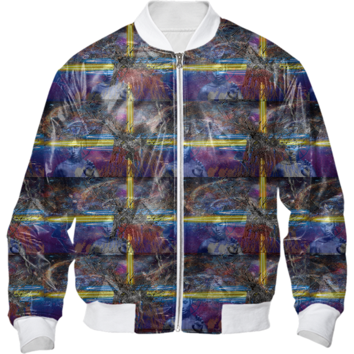 Light weight bombr jacket with your choice of white or black ribbing slight padding zip up front and side pockets. The inside is adorned with PAOM straps for swinging over your shoulders so you dont have to hold it.