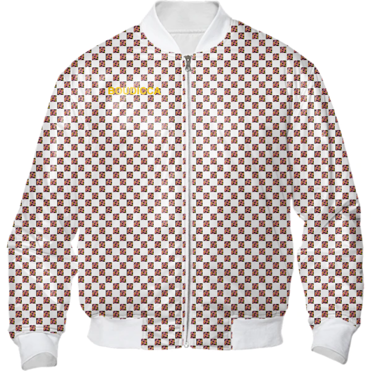 Light weight bombr jacket with your choice of white or black ribbing slight padding zip up front and side pockets. The inside is adorned with PAOM straps for swinging over your shoulders so you dont have to hold it.