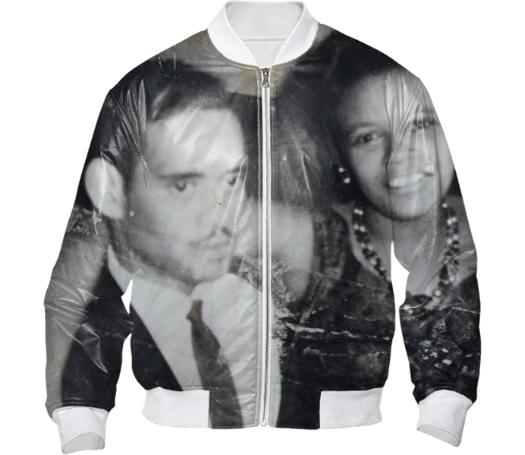 Light weight bombr jacket with your choice of white or black ribbing slight padding zip up front and side pockets. The inside is adorned with PAOM straps for swinging over your shoulders so you dont have to hold it.