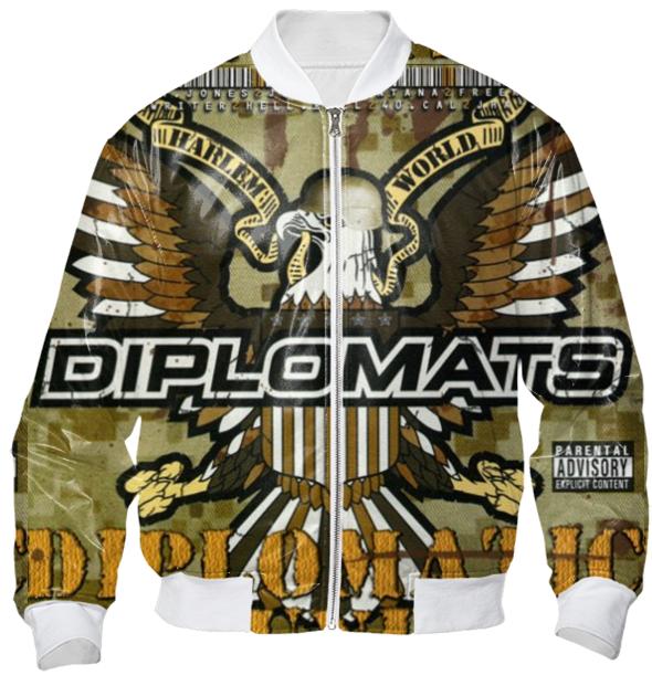 Light weight bombr jacket with your choice of white or black ribbing slight padding zip up front and side pockets. The inside is adorned with PAOM straps for swinging over your shoulders so you dont have to hold it.