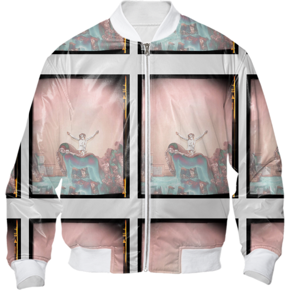 Light weight bombr jacket with your choice of white or black ribbing slight padding zip up front and side pockets. The inside is adorned with PAOM straps for swinging over your shoulders so you dont have to hold it.