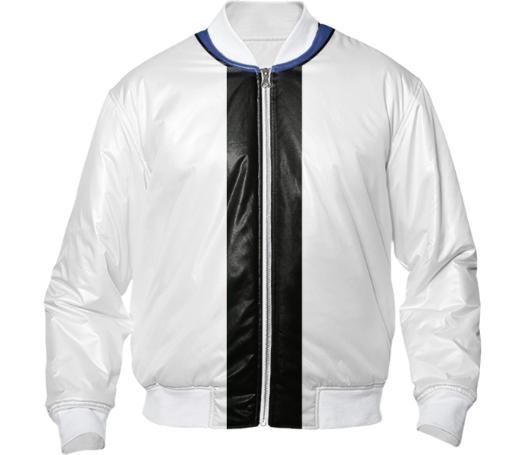 Light weight bombr jacket with your choice of white or black ribbing slight padding zip up front and side pockets. The inside is adorned with PAOM straps for swinging over your shoulders so you dont have to hold it.