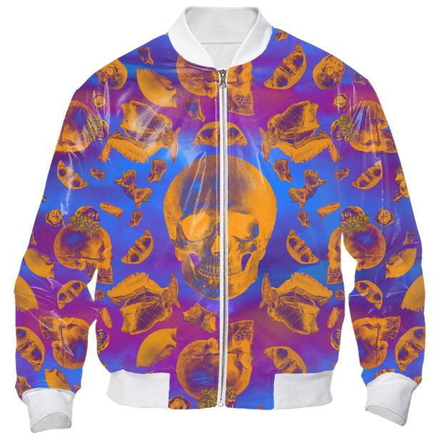 Light weight bombr jacket with your choice of white or black ribbing slight padding zip up front and side pockets. The inside is adorned with PAOM straps for swinging over your shoulders so you dont have to hold it.