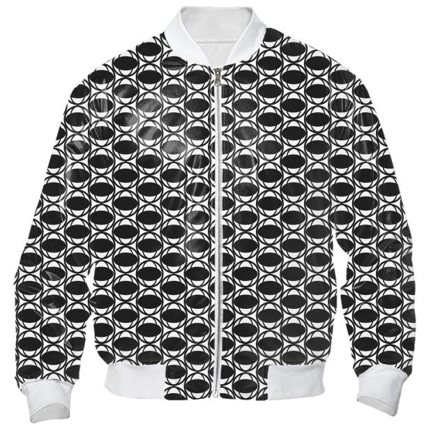 Light weight bombr jacket with your choice of white or black ribbing slight padding zip up front and side pockets. The inside is adorned with PAOM straps for swinging over your shoulders so you dont have to hold it.