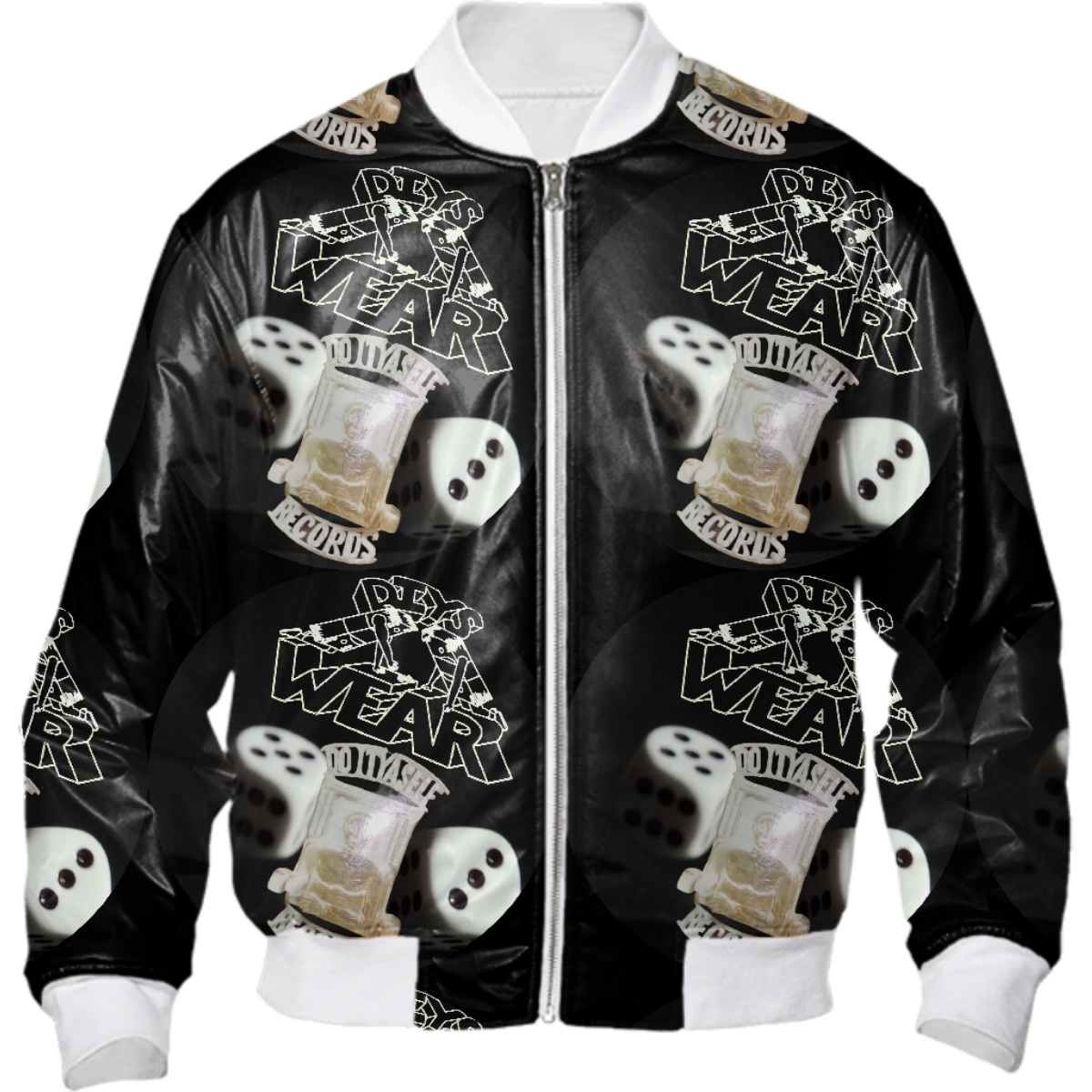 Light weight bombr jacket with your choice of white or black ribbing slight padding zip up front and side pockets. The inside is adorned with PAOM straps for swinging over your shoulders so you dont have to hold it.