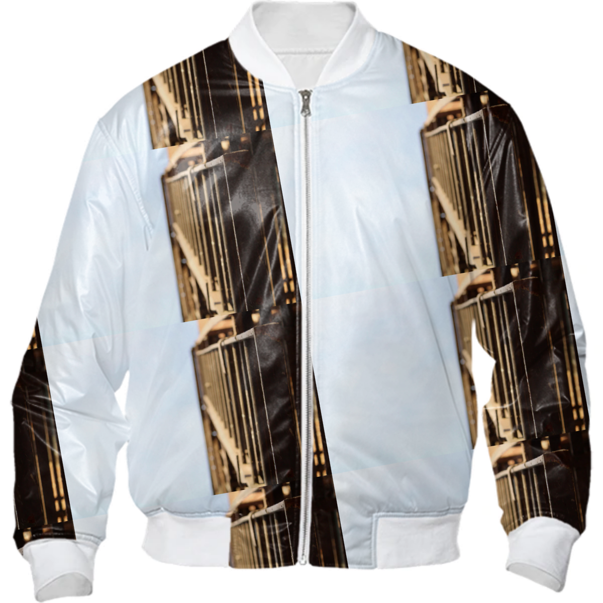 Light weight bombr jacket with your choice of white or black ribbing slight padding zip up front and side pockets. The inside is adorned with PAOM straps for swinging over your shoulders so you dont have to hold it.