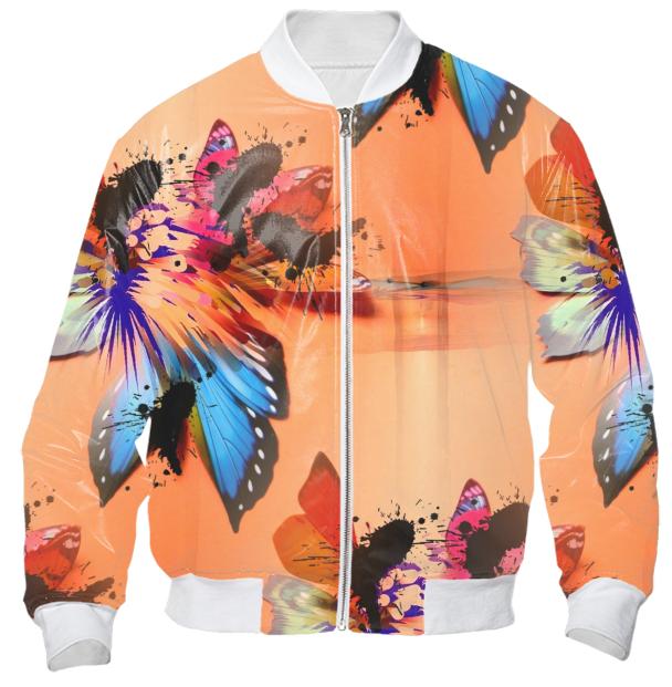 Light weight bombr jacket with your choice of white or black ribbing slight padding zip up front and side pockets. The inside is adorned with PAOM straps for swinging over your shoulders so you dont have to hold it.