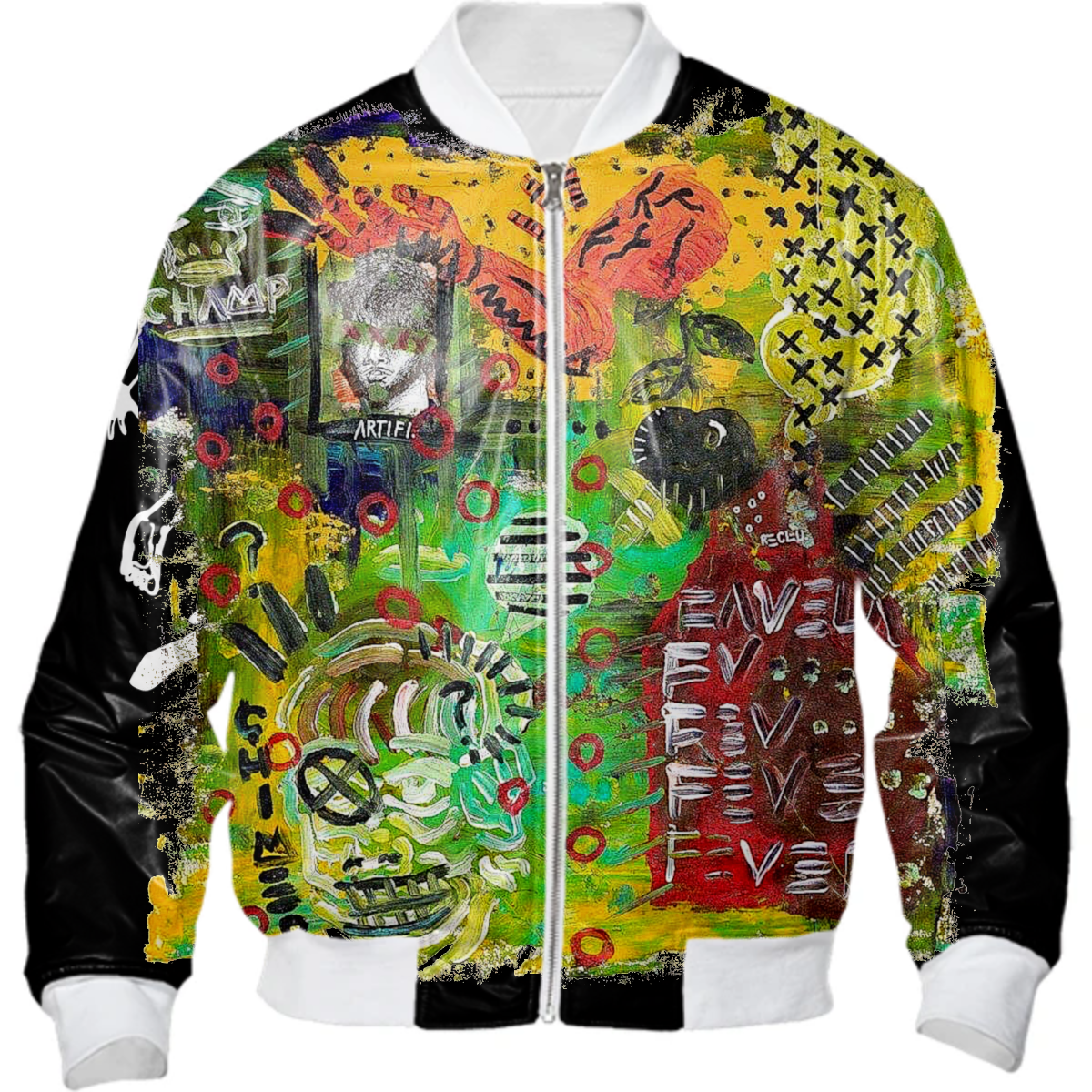 Light weight bombr jacket with your choice of white or black ribbing slight padding zip up front and side pockets. The inside is adorned with PAOM straps for swinging over your shoulders so you dont have to hold it.