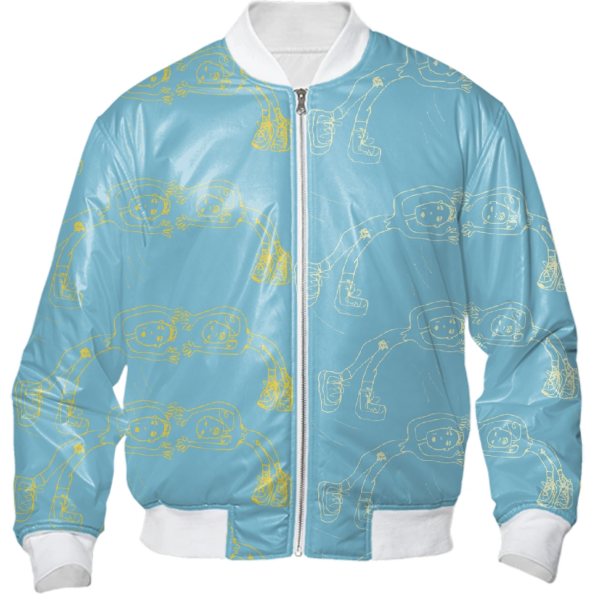 Light weight bombr jacket with your choice of white or black ribbing slight padding zip up front and side pockets. The inside is adorned with PAOM straps for swinging over your shoulders so you dont have to hold it.