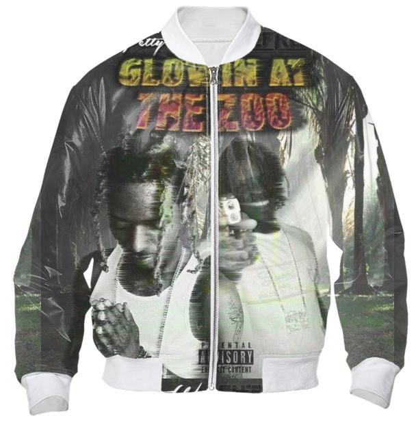 Light weight bombr jacket with your choice of white or black ribbing slight padding zip up front and side pockets. The inside is adorned with PAOM straps for swinging over your shoulders so you dont have to hold it.