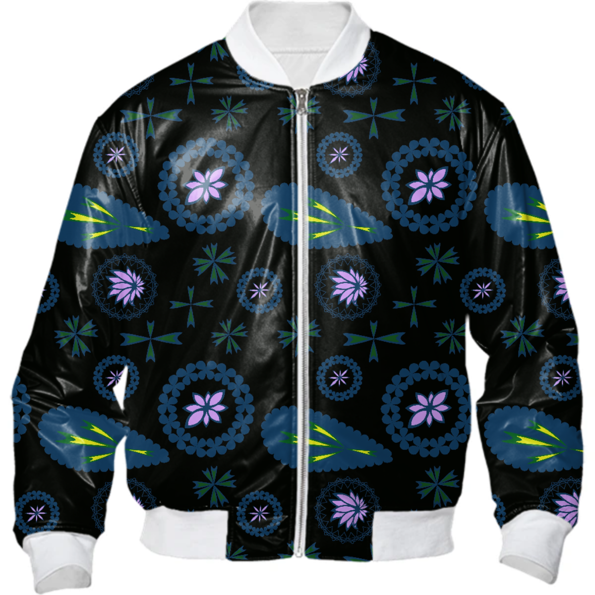 Light weight bombr jacket with your choice of white or black ribbing slight padding zip up front and side pockets. The inside is adorned with PAOM straps for swinging over your shoulders so you dont have to hold it.