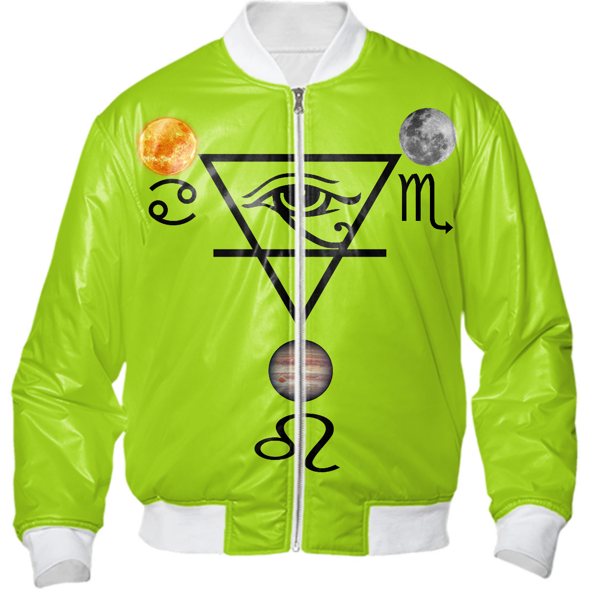 Light weight bombr jacket with your choice of white or black ribbing slight padding zip up front and side pockets. The inside is adorned with PAOM straps for swinging over your shoulders so you dont have to hold it.