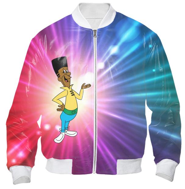 Light weight bombr jacket with your choice of white or black ribbing slight padding zip up front and side pockets. The inside is adorned with PAOM straps for swinging over your shoulders so you dont have to hold it.
