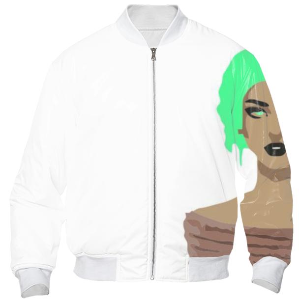 Light weight bombr jacket with your choice of white or black ribbing slight padding zip up front and side pockets. The inside is adorned with PAOM straps for swinging over your shoulders so you dont have to hold it.