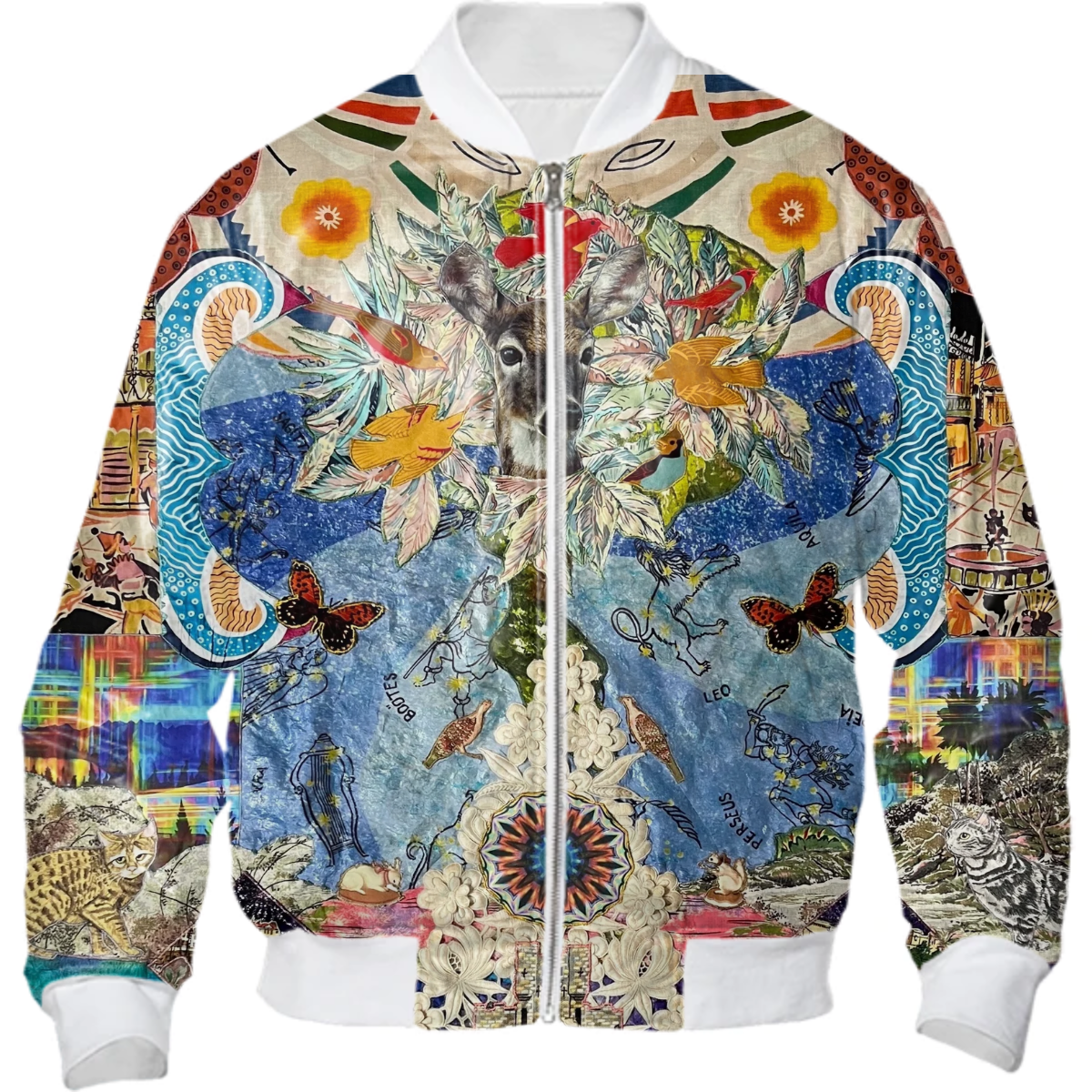 Light weight bombr jacket with your choice of white or black ribbing slight padding zip up front and side pockets. The inside is adorned with PAOM straps for swinging over your shoulders so you dont have to hold it.