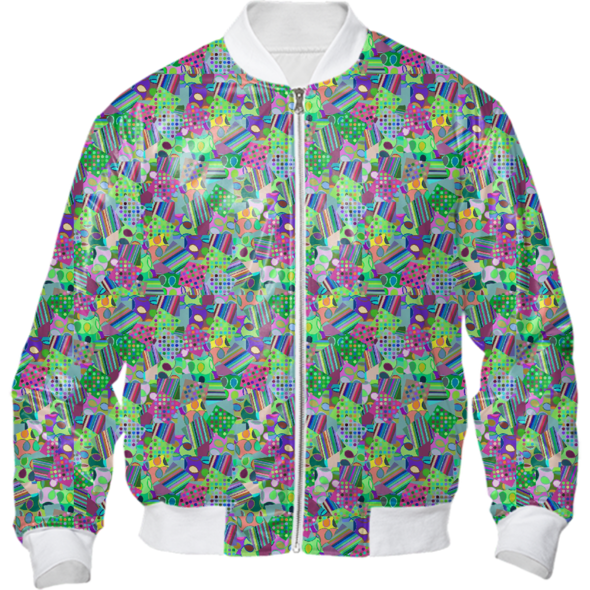 Light weight bombr jacket with your choice of white or black ribbing slight padding zip up front and side pockets. The inside is adorned with PAOM straps for swinging over your shoulders so you dont have to hold it.
