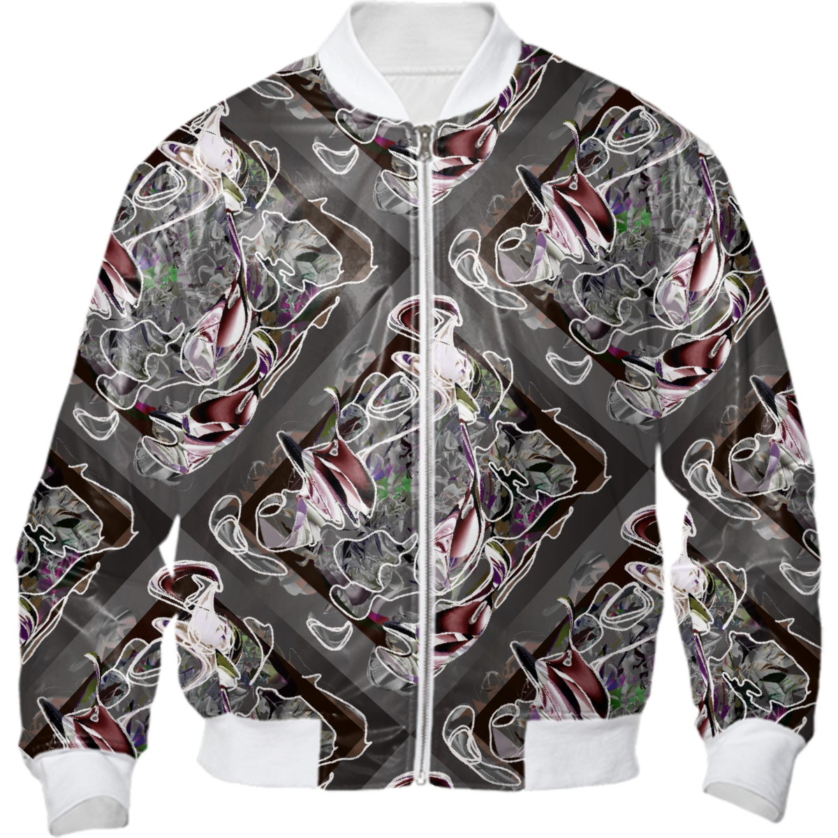 Light weight bombr jacket with your choice of white or black ribbing slight padding zip up front and side pockets. The inside is adorned with PAOM straps for swinging over your shoulders so you dont have to hold it.