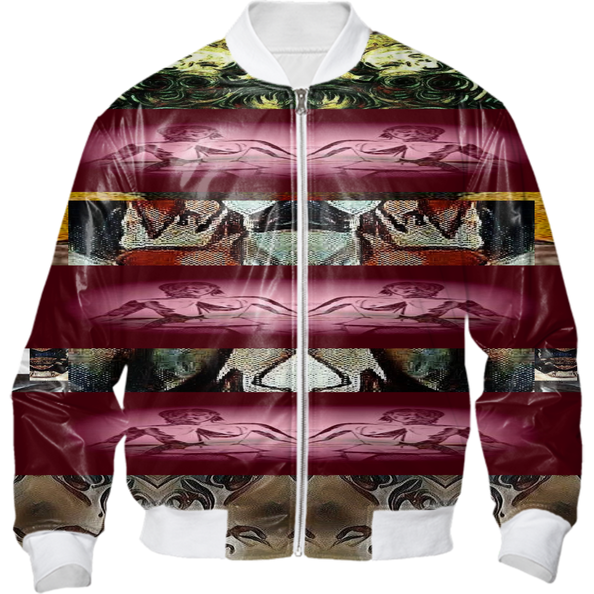 Light weight bombr jacket with your choice of white or black ribbing slight padding zip up front and side pockets. The inside is adorned with PAOM straps for swinging over your shoulders so you dont have to hold it.