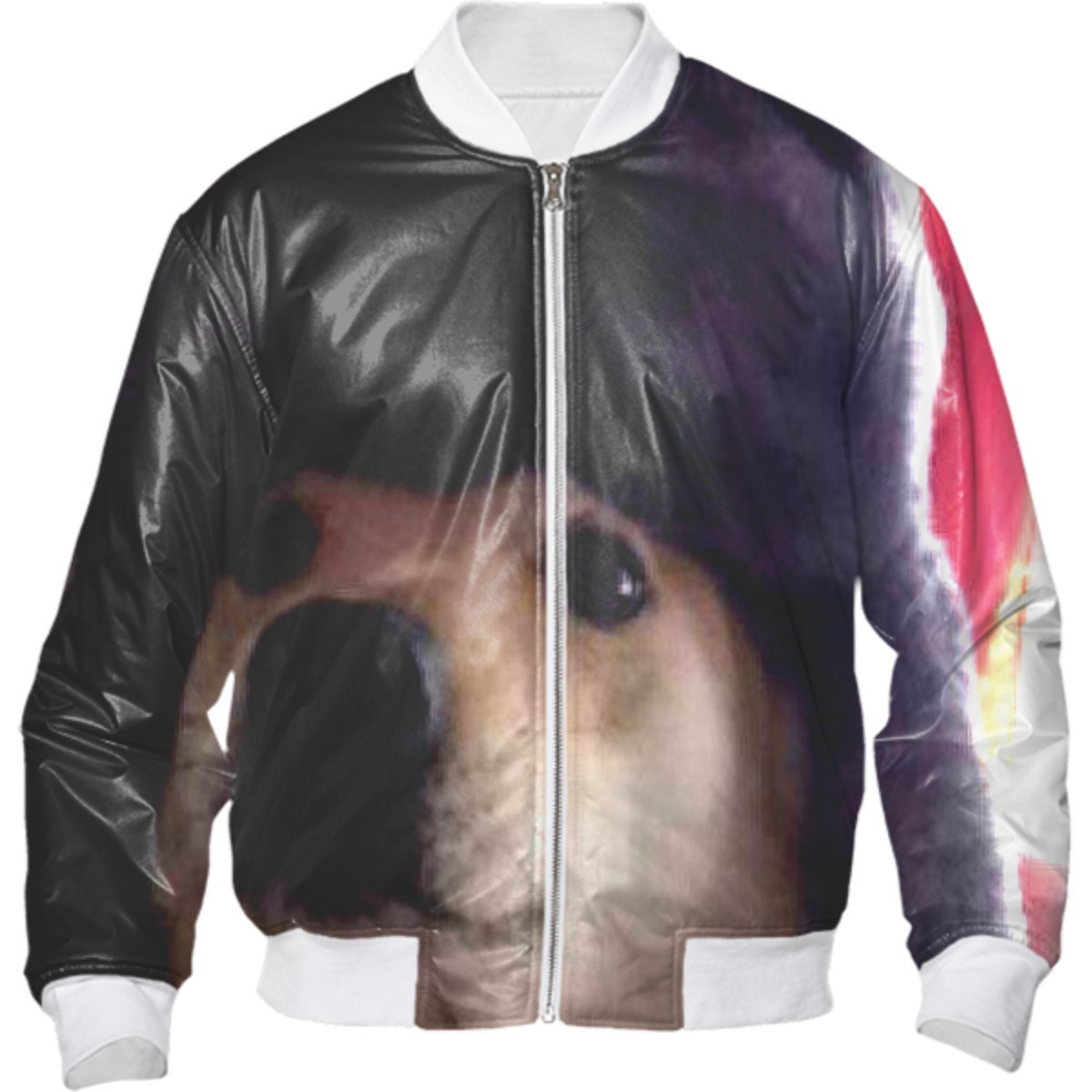 Light weight bombr jacket with your choice of white or black ribbing slight padding zip up front and side pockets. The inside is adorned with PAOM straps for swinging over your shoulders so you dont have to hold it.